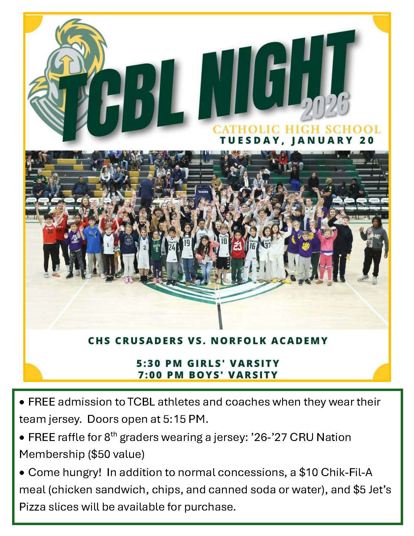 The Tidewater Catholic Basketball League promotes Catholic values in the spirit of basketball development and competition, encouraging teams to be steadfast through the obstacles of both sport and life, while building the knowledge of handling both victory and defeat with sportsmanship and grace.